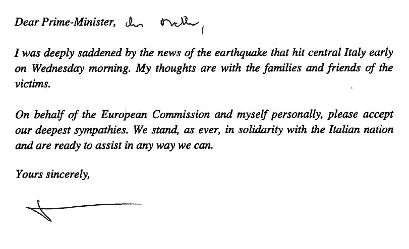 L’Italia è parte della famiglia europea. L’Unione Europea assicura, in questo difficile momento, la sua piena solidarietà al popolo italiano e alle autorità nazionali.